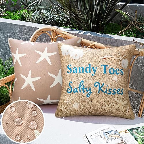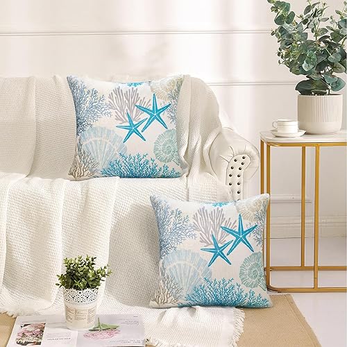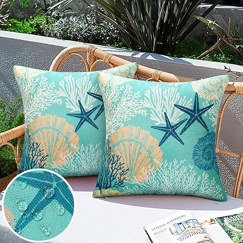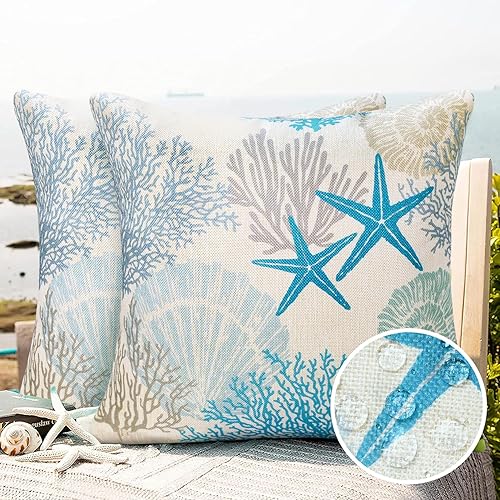 Housse de Coussin 40X40 Lot de 2 Housse Coussin Thème Plage Coquillage Océanique Taie Oreiller Extérieur Imperméable Coussin Decoratif pour Canapé Lits Chaises Voiture Salon Maison Décor