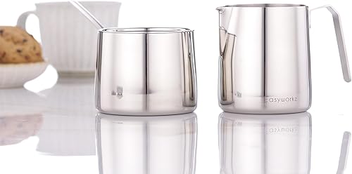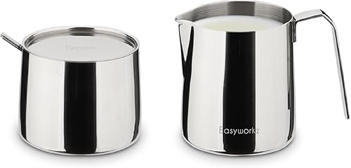 Easyworkz Ensemble sucrier et crémier en acier inoxydable, avec cuillère et bec verseur anti-goutte, design empilable, chrome