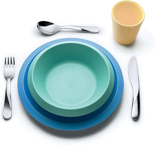 Alessi Giro Kids Collection UNS06S3 - Ensemble de Couverts pour Enfants pour les Premiers Déjeuners Seuls, Acier Inoxydable 18/10, Gris