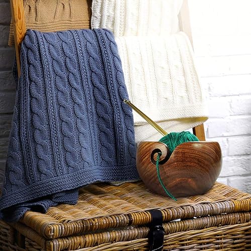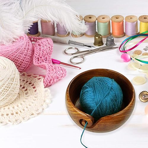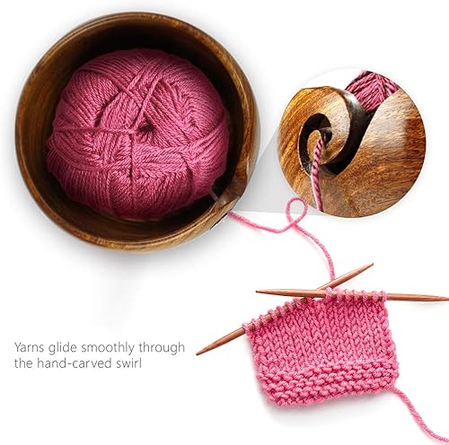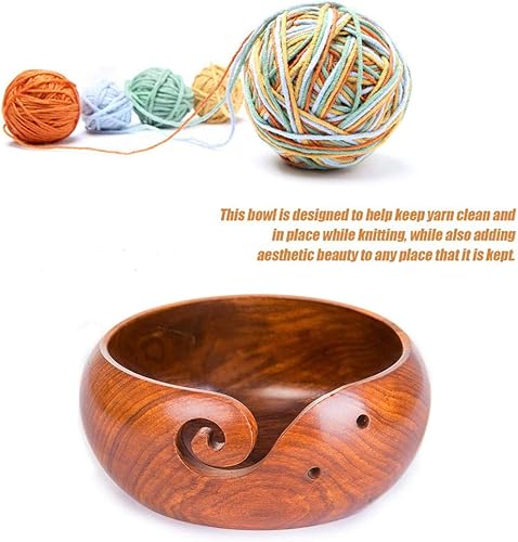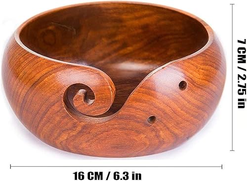 JasCherry Fil à Bol en Bois avec Trous Design pour Le Tricot et Le Crochet - Fil Bowl en Bois Franc Dur Fait Main pour Le Stockage de Pelote de Laine - 6.5 x 6.5 x 3.2 inch #2