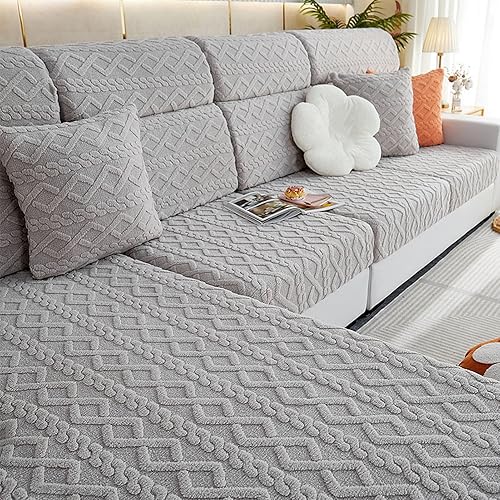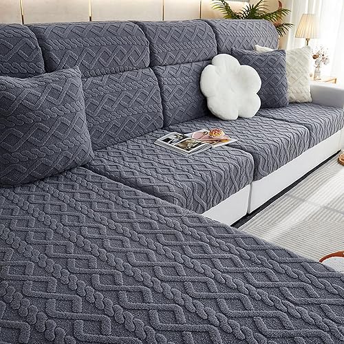 Reyox Housse de Canapé en Jacquard Épais, Extensible Couverture Canape en Moelleuse, Douce et Chaude pour Salon, Gris Foncé, Housse de Dossier (M)