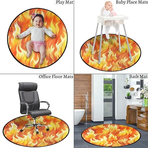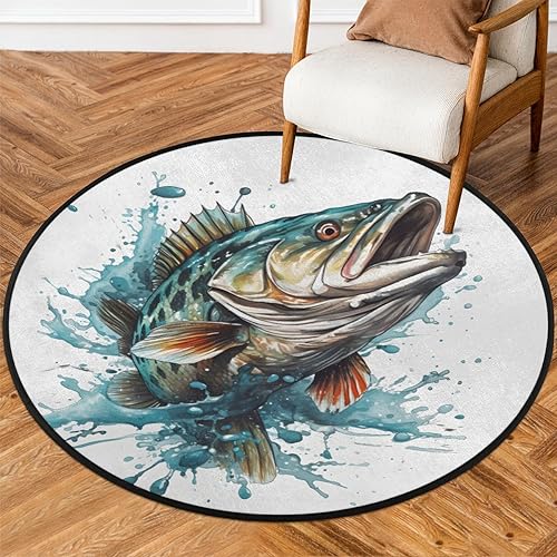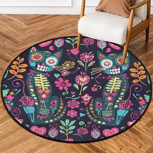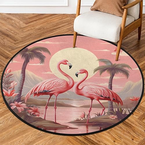 Mexpekil Tapis rond lavable avec envers antidérapant et motif flamants roses et rivière - 160 cm de diamètre - Décoration d'intérieur moderne