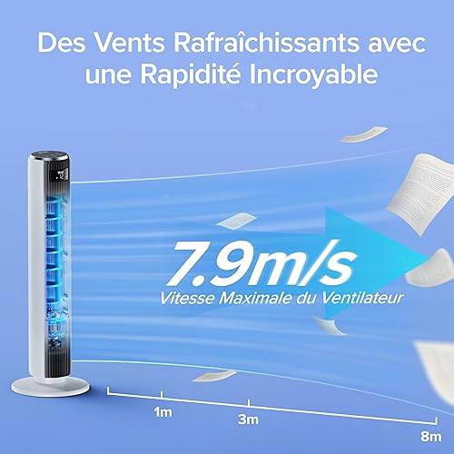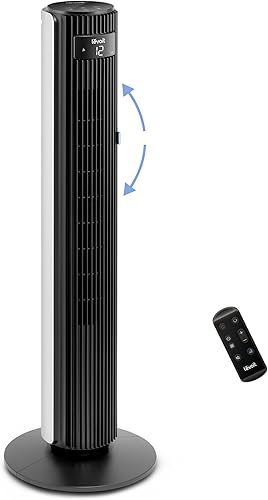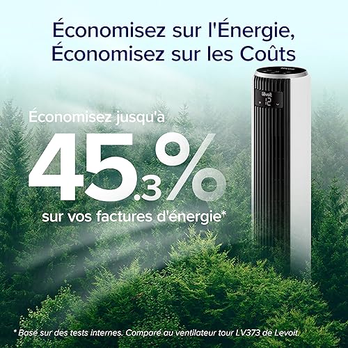 LEVOIT 20dB Ventilateur Colonne Silencieux, 7.9m/s DC Moteur, 26W, Oscillant 90° avec 12 Vitesses, Minuterie 12h, 4 Modes, Affichage LED de Refroidissementavec Télécommande