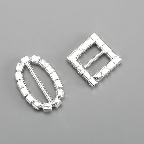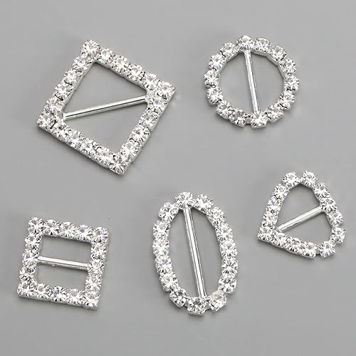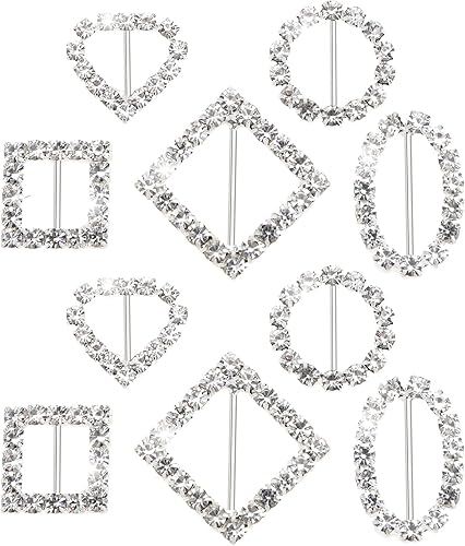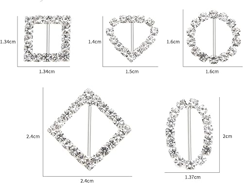 The Lord of the Tools 10pcs Boucle Strass Brillant Ruban Curseur Rond Carré Ovale Losange Coeur Forme Ruban Boucle Métal Attache pour Invitation de Mariage Décoration Embellissements 1,34-2,4cm