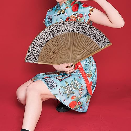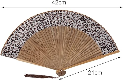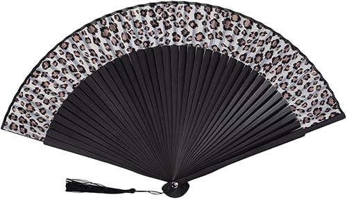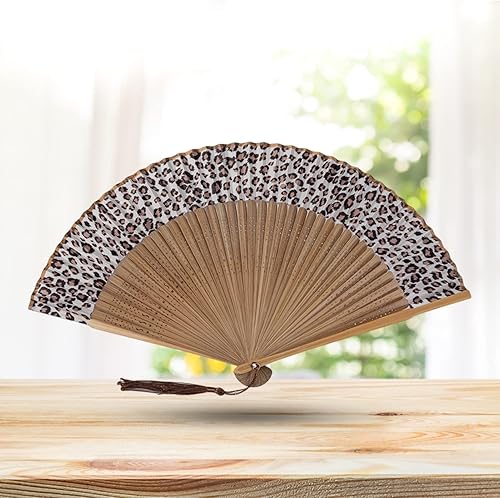Wilitto Éventail pliable avec pompon, imprimé léopard, motif floral, éventail à main plié, accessoire de danse archaistique, accessoires de danse de mariée, cadeau de mariage, fête prénatale, D