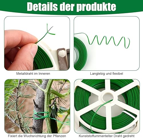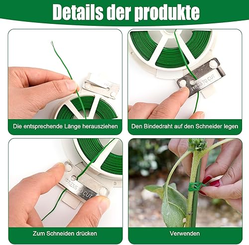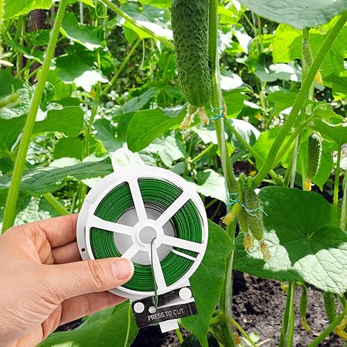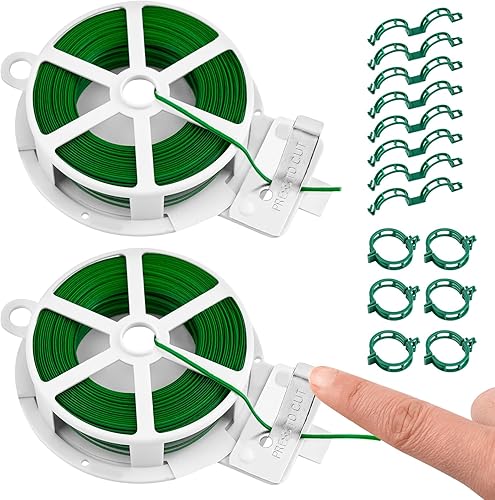 100M Fil de Serrage pour Jardin, 2 Rouleaux Fil Torsadé Avec Distributeur et Cutter, Fil de Liaison Fin avec 50PCS Clips pour Plantes Grimpantes, Arbustes, Fleurs, Vignes(Vert)