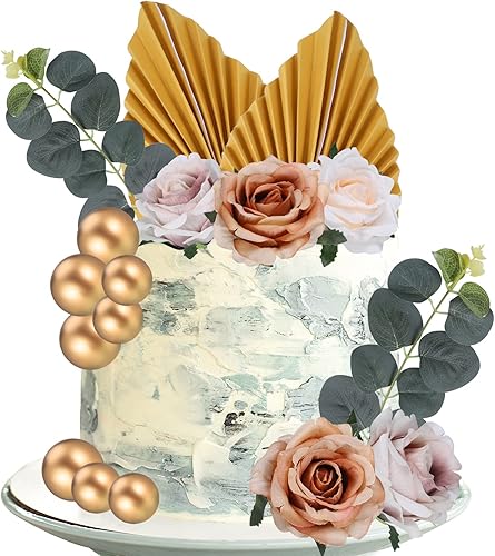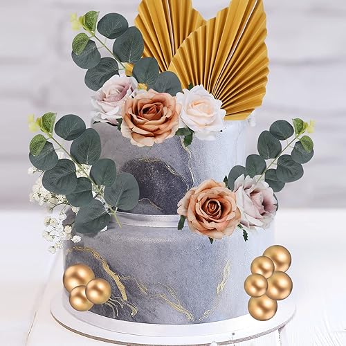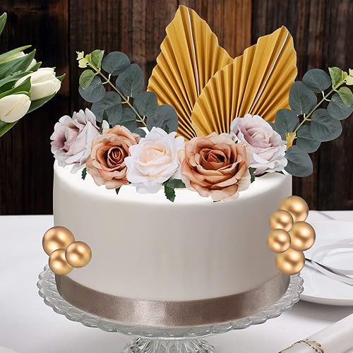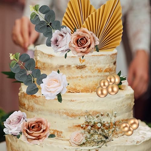 Xinzistar 22pcs Décoration Gâteau, Fleurs Gâteau Topper Feuilles de Palmier Gâteau Décoration pour Bébé Douche Fête de Mariage d'anniversaire