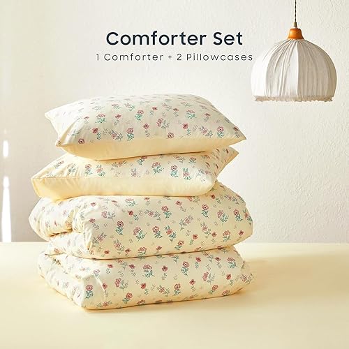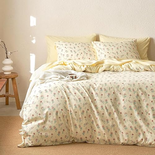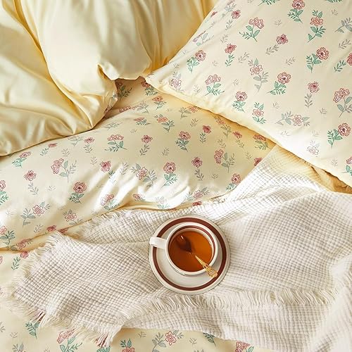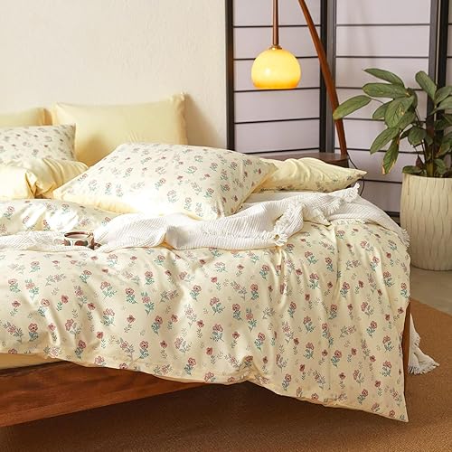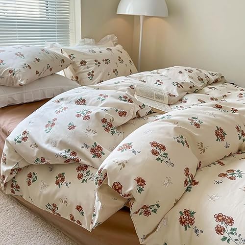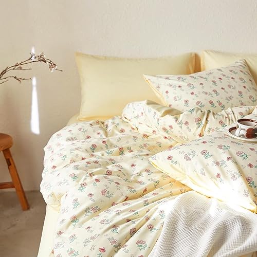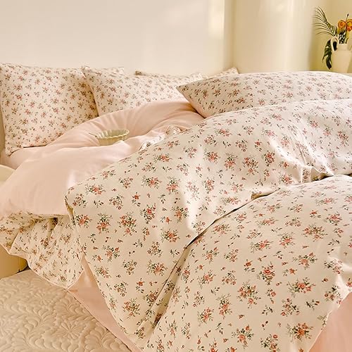 Sedefen Housse de Couette 220x240cm Fleurs Motif Rose Vert Blanc Floral Feuilles Parure de Lit Ado 2 Personne Fleurie Housse Couette en Microfibre avec Fermeture Éclair et 2 Taie d'oreiller 65x65cm