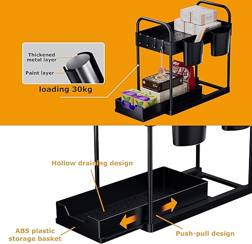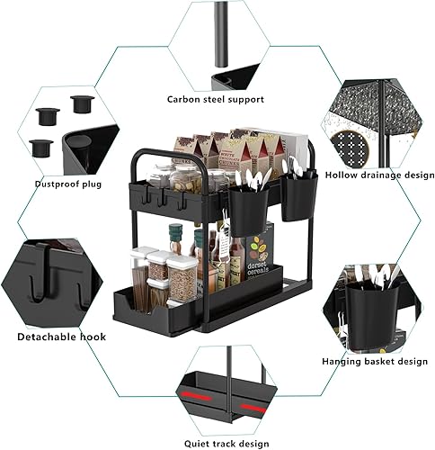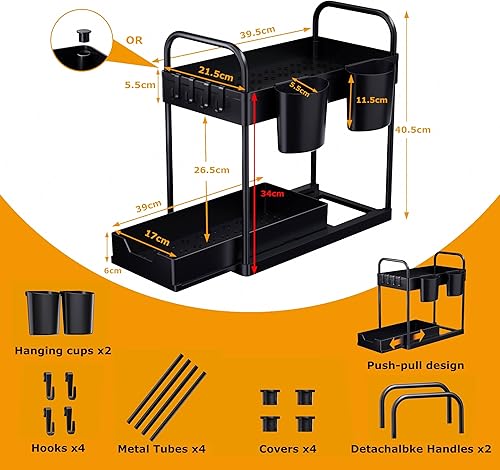 AIXPI Rangement sous Evier Cuisine à 2 Niveaux Lot de 1, Rangement D'organisateur de Douche pour Salle de Bain/Cuisine, Noir
