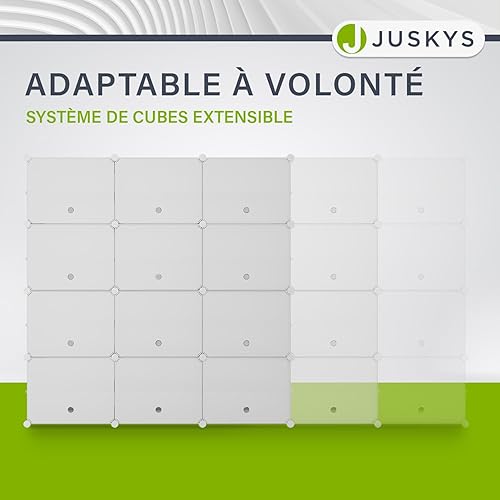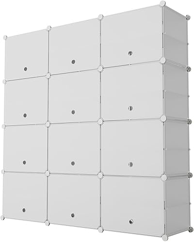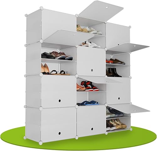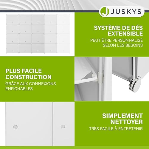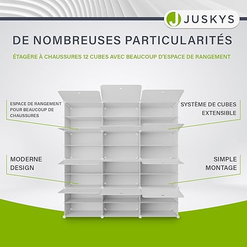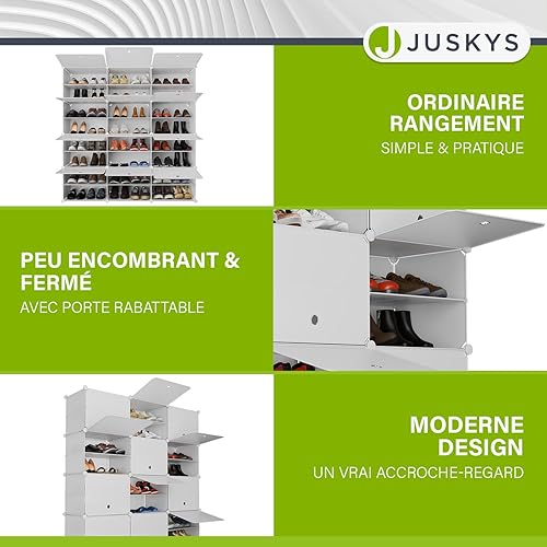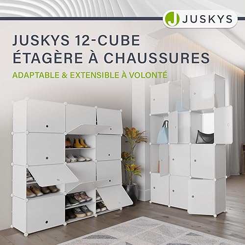 Juskys Armoire à Chaussures avec 12 casiers & Portes - Armoire en Plastique pour 48 Paires de Chaussures - étagère fermée - rayonnages emboîtables étagère à Chaussures - étagère à casiers Blanc