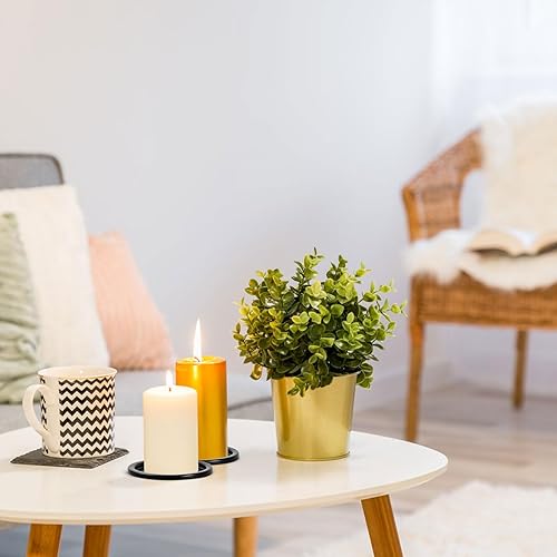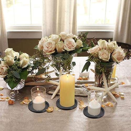 Focenat 4 Pièces Porte Bougie Metal, Support Bougies, Plateau Bougie Ronde, Chandelier Bougeoir Noir, Bougeoir Metal Noir, pour Bougie Pilier Baptême Décoration Mariage Able de Noël Maison Table Fête