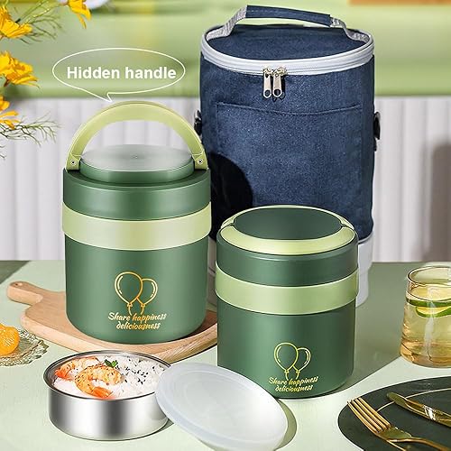 KBIBCK Boîtes Alimentaires Isothermes, 1500 ml Boîte Isotherme Repas Chaud avec Cuillères, Fourchettes et Sacs Isothermes, Thermos Alimentaire Chaud, pour Ecole, Bureau, Camping