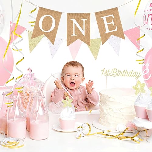 Une Bannière de Chaise Haute 1er Anniversaire Garçon Fille 1er Anniversaire de Chaise Haute Premier Anniversaire Anniversaire Bebe 1 an Banderole Décoration 1er Anniversaire Bannière en Toile de Jute