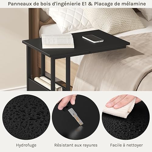 WOLTU Table Bout de canapé Table Basse à thé en métal et aggloméré, Noir TS79sz