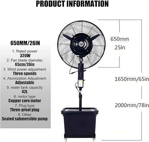 LXHGVKHJ Ventilateur Brumisateur Industriel sur Pied 65/75 cm, 3 Vitesses, Oscillant, Réservoir 42L, Ventilateur de Refroidissement pour Jardin Bureau Serre Tonnelle(30 inches)