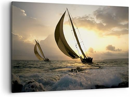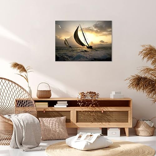 Décoration Salon bateau coucher du soleil le soleil Paysage Moderne Impression sur Toile 120x80cm Image Tableau Decoration Murale Chambre Horizontal Art Wall Tableaux Decoratifs Muraux AA120x80-3158