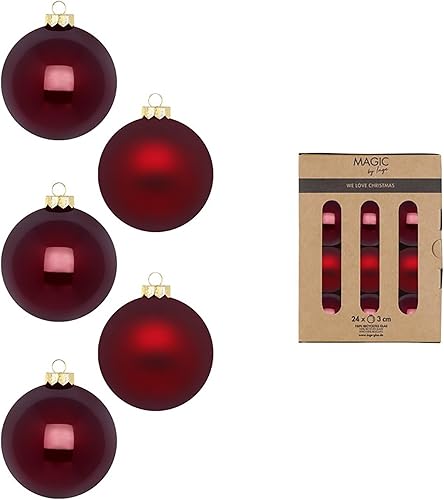 Lot de 24 Mini Boules de Noël en Verre - 3 cm - Mat et Brillant - Décoration de Sapin - Bordeaux Foncé - Port Lisse