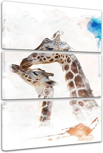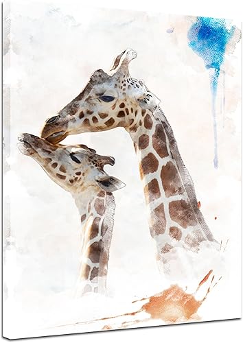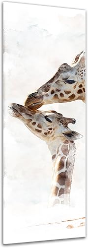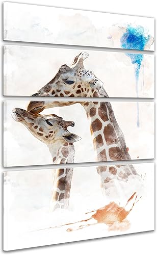 Bilderdepot24 Reproduction Aquarelle - Girafe - Image sur Toile 40 x 50 cm Monobloc - Images comme Une Impression de Toile - la Faune - Girafe et Son Petit