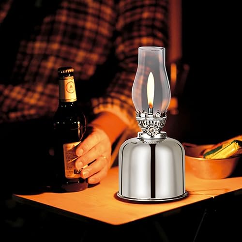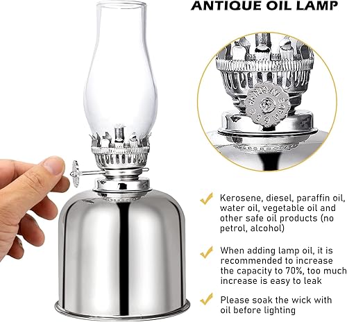 Lampe à pétrole rétro avec verre et métal, lampe à huile coupe-vent pour le camping et la décoration