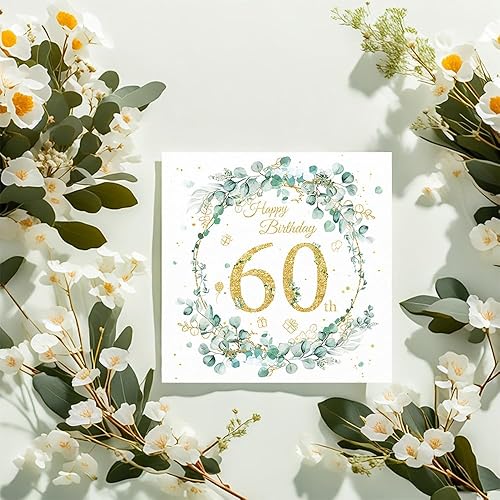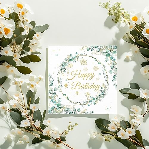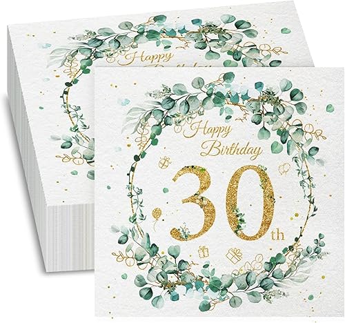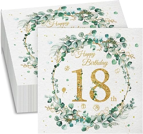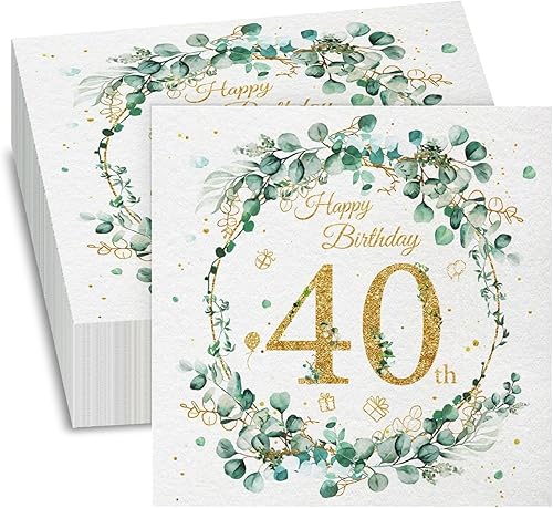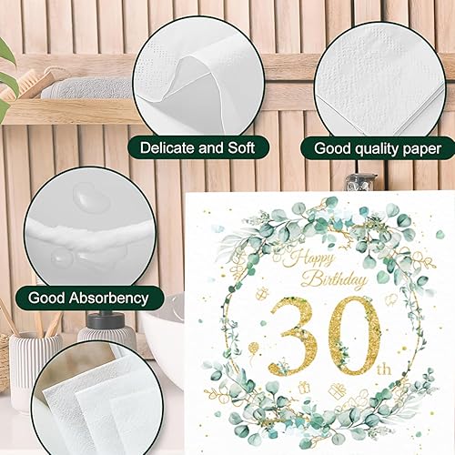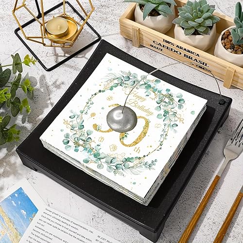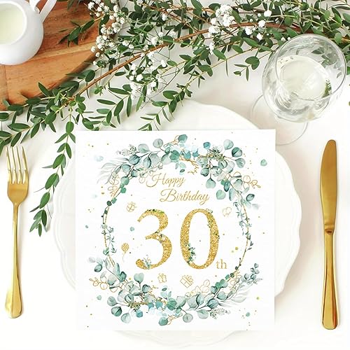 Lot de 40 serviettes décoratives en papier pour 80e anniversaire - Vert eucalyptus - Happy Birthday - 80 serviettes en papier pour 80e anniversaire de femme