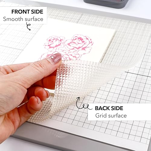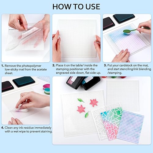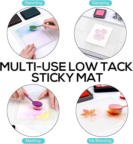 Tapis adhésif à faible adhérence de 21 x 21 cm avec grille pour tamponnage, mélange d'encre, photopolymère transparent, tapis de tampon à faible adhérence et tampon fixe, projets de bricolage, cartes