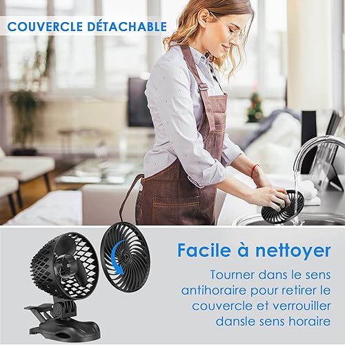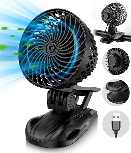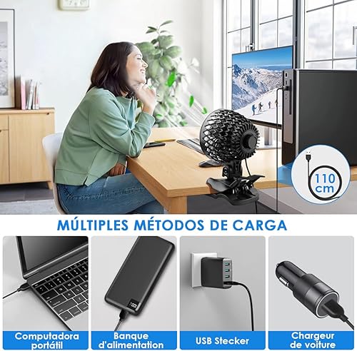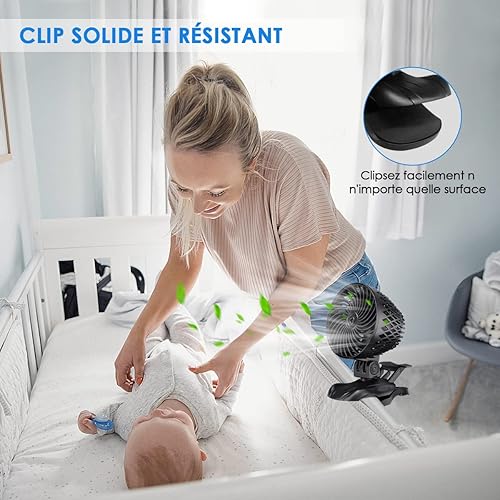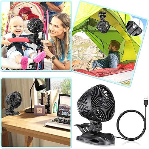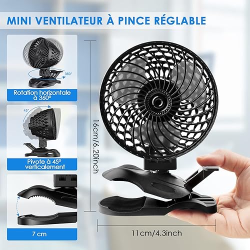 AJVV Ventilateur de Bureau, Portable Ventilateur Silencieux avec Clip, Mini Ventilateur USB Rotation à 360 ° & Vitesse Réglable en Continu Ventilateur Pince Poussette pour Maison Bureau sans Batterie