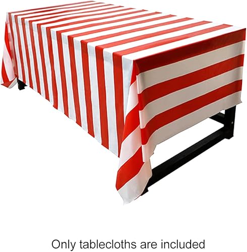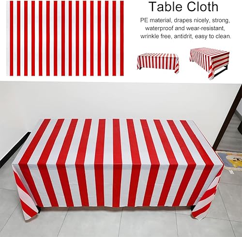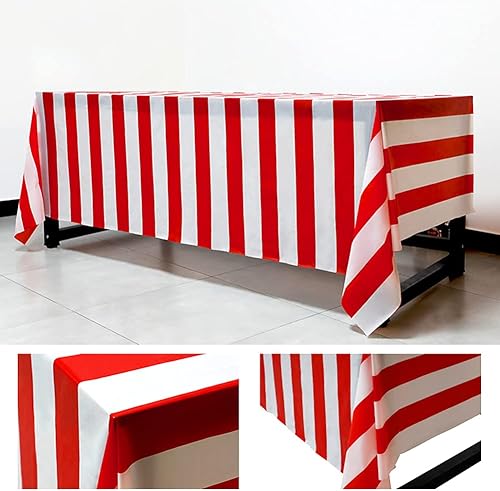 UxradG Nappe rayée rouge et blanche - Jupe de table de cirque de carnaval - Pour intérieur et extérieur - Pour fête sur le thème du cirque, décorations de fête d'anniversaire (rouge + blanc)