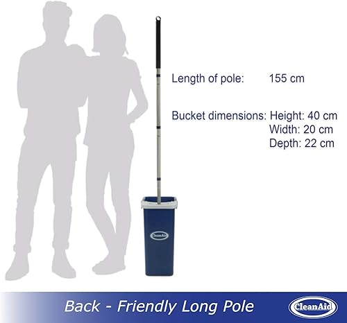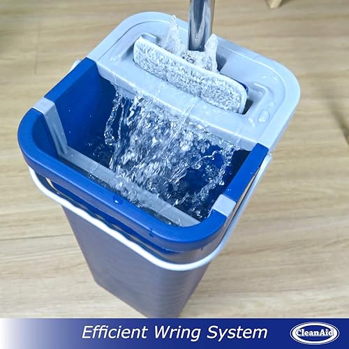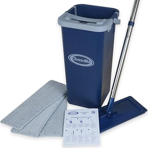 CleanAid Serpillère, Seau et Balai Essoreur Formosa-Kit Ménage Complet-Balai Plat avec Manche en Acier Inoxydable-3 Recharges en Microfibre-Parfait pour Nettoyer Les Sols en Bois, Les Sols Stratifiés