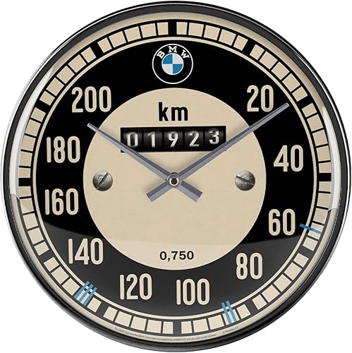 Nostalgic-Art Horloge rétro, Ø 31 cm, Official License Product (OLP), BMW – Tachometer – Idée de Cadeau pour Fans de BMW, décoration Murale Cuisine, Design Vintage