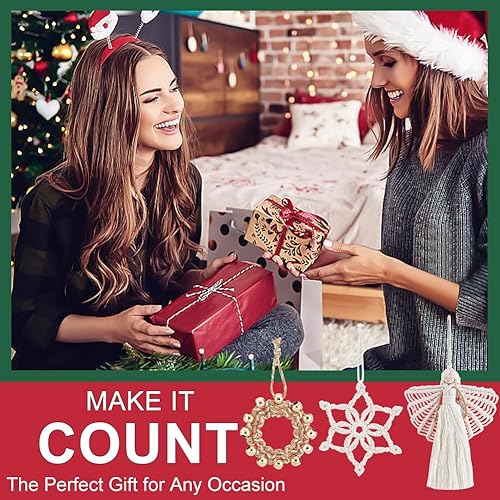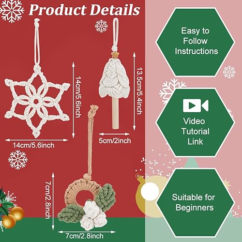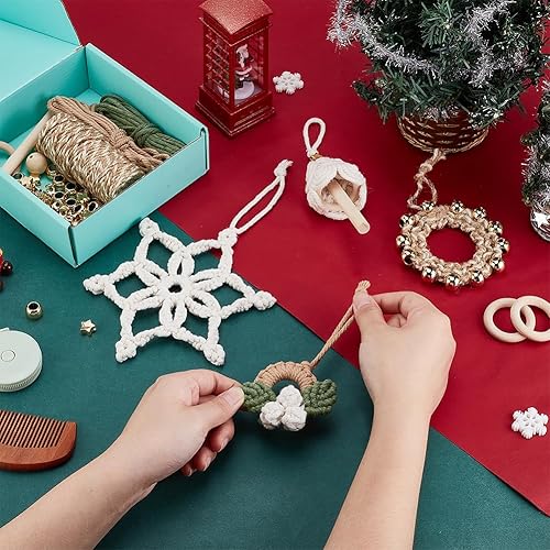 BEUNITONE Mini décoration de Noël en macramé - Pour adultes et débutants - Kit de bricolage avec flocons de neige - Avec instructions pour la décoration à suspendre