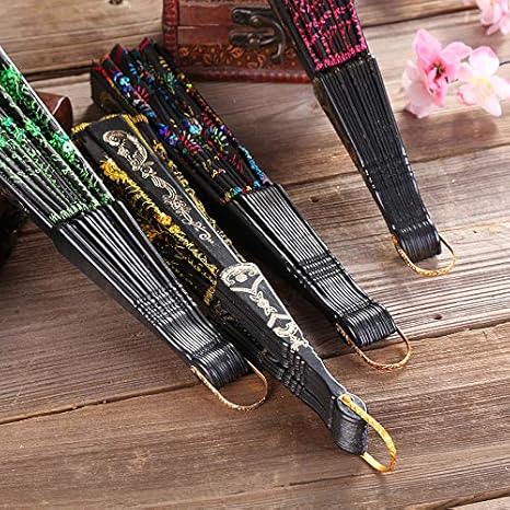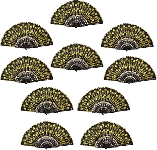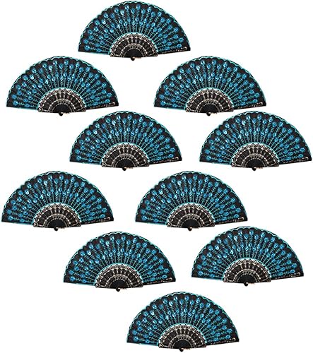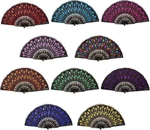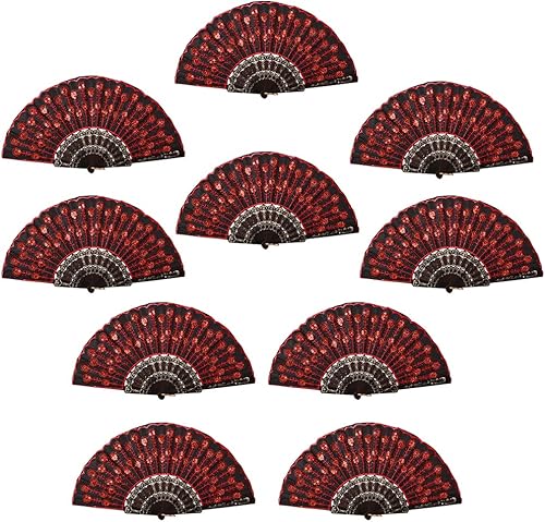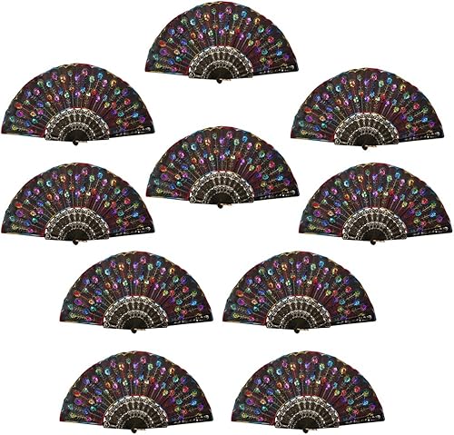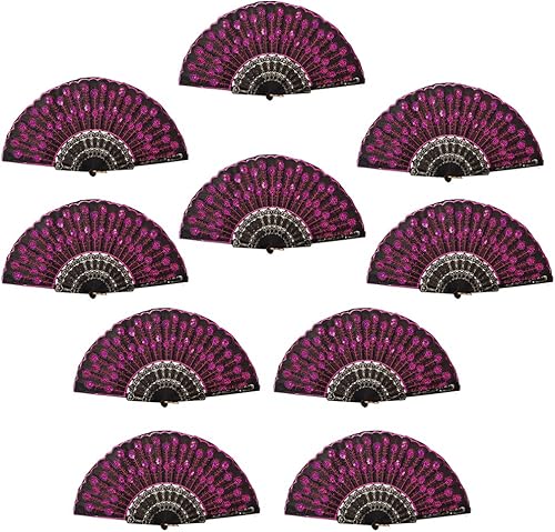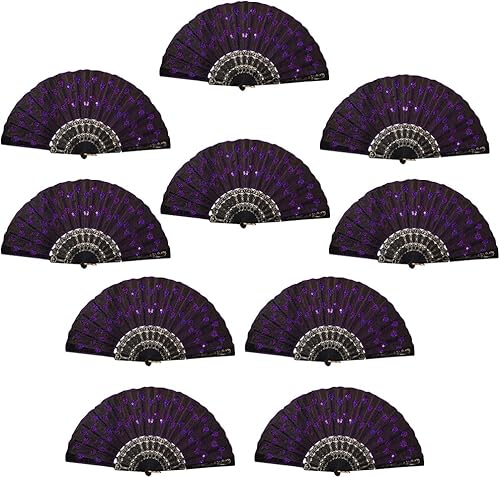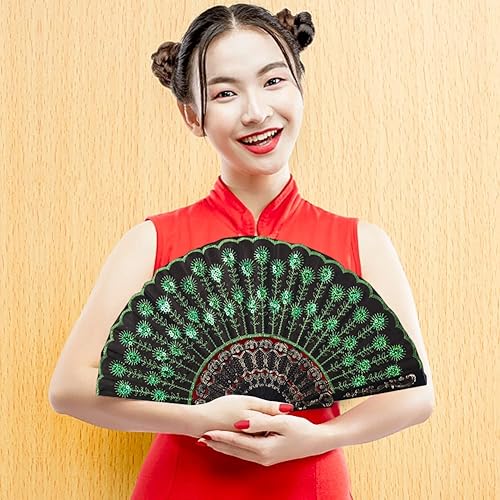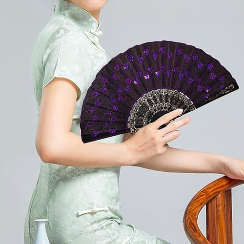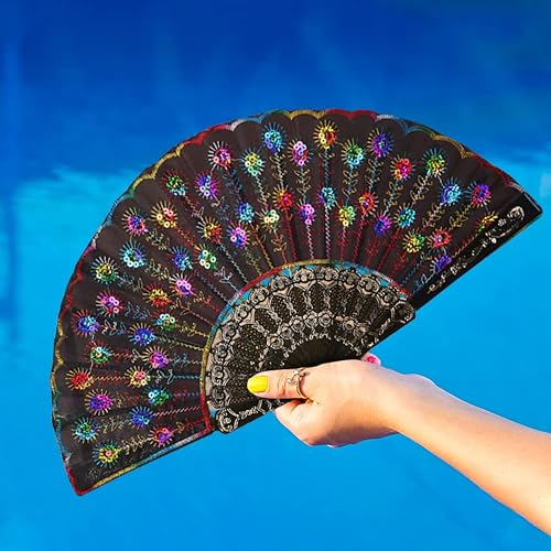 URFEDA Vintage Éventail Dentelle en Tissu à Paillettes Pliable Éventail Paon Plume Fleur Dentelle Broderie Éventail à Main Femmes pour Dansant Mariage Fête Faveurs Cadeau Décoration Murale, Couleur