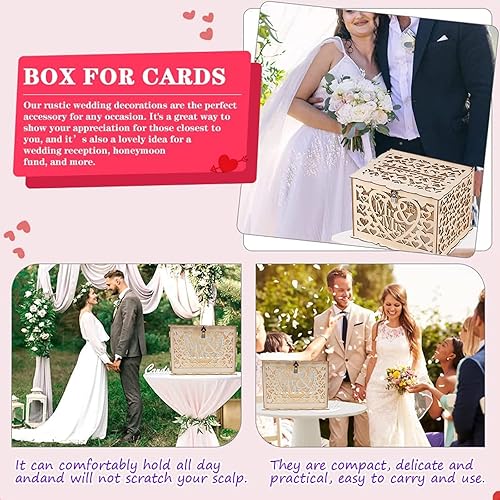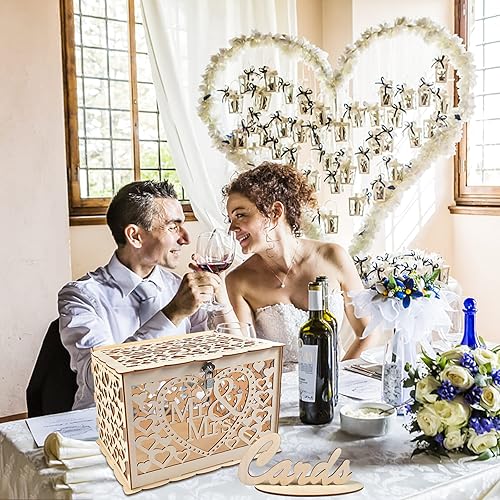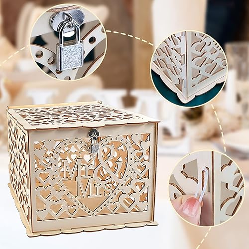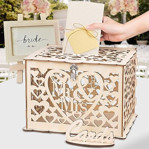 Runup Boîte à cartes de mariage, boîte à cartes de mariage en bois avec fente de verrouillage, boîte à courrier de mariage vintage, boîte à argent pour les mariages, les fiançailles