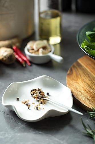Repose Cuillère Cuisine en Céramique,Support pour Ustensiles de Cuisine,Porte-Cuillère pour Spatules,Pinces,Cuillères à Café ou Ustensiles,Cuisinière et Comptoir,Lavable au lave-vaisselle (Blanc,13cm)