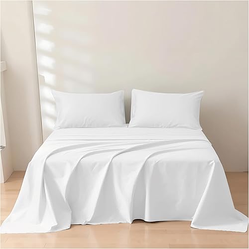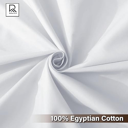 Rehan & Co Drap plat Super King Size - 100 % coton égyptien 300 fils au pouce carré - Qualité hôtelière - Uni - Respirant - 275 x 310 cm - Blanc