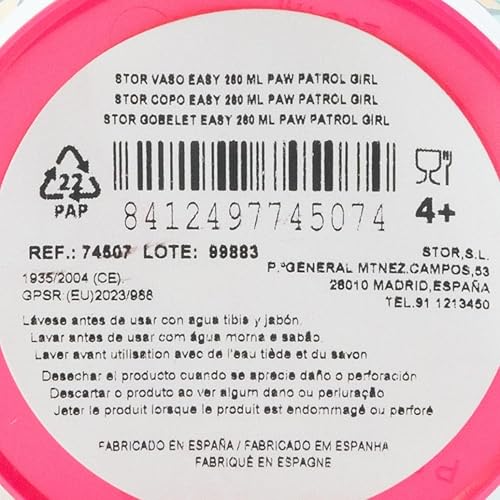 GOBELET RÉUTILISABLE POUR ENFANTS EN PLASTIQUE SANS BPA 260 ML | PAW PATROL GIRL SKETCH ESSENCE, Rose