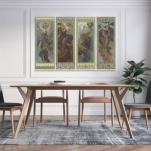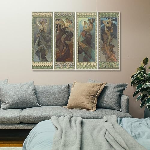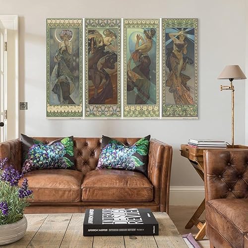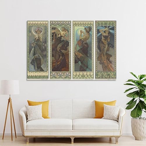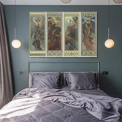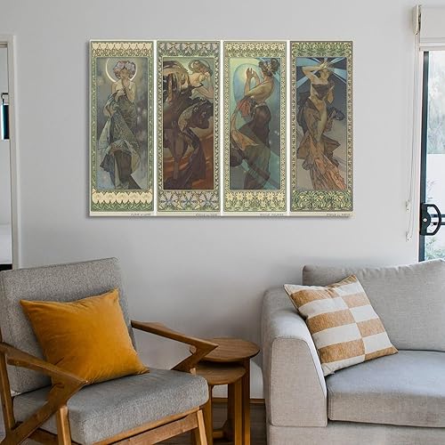Artopweb Poster Mucha La lune et les étoiles sur toile - Impression sur toile - Impression photo - Décoration de chambre - 40 x 60 cm