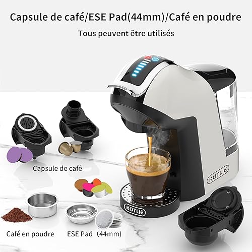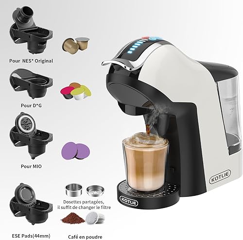 KOTLIE EM-308A Machine à café à capsules 5 en 1, permettant l'extraction à chaud et à froid, la température et le volume d'eau peuvent être librement sélectionnés(blanc)