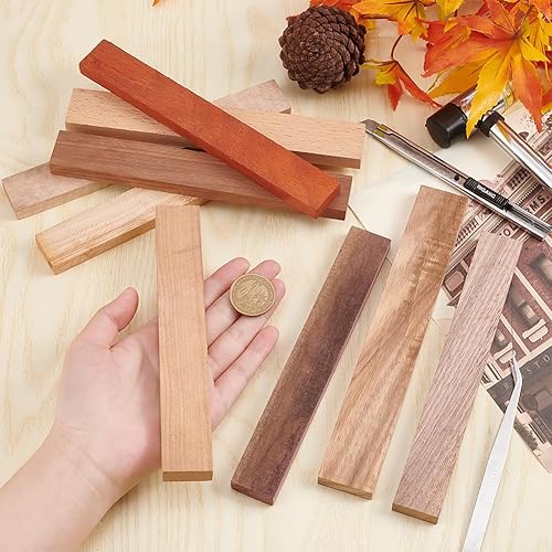 OLYCRAFT 9 Pcs 9 Couleurs Ébauches de Stylo en Bois Kit d'ébauches de stylos Exotiques Bois de Cerisier Padauk Noir Noyer Banc Matériel de Bricolage en Bois pour épingles à Cheveux - 18x2.5x1cm
