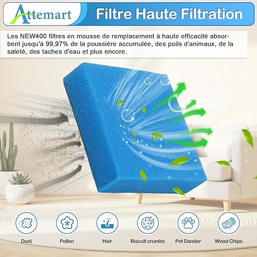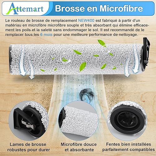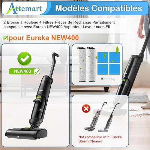 Attemart Brosse Principale à Filtre Kit d'accessoires pour Eureka NEW400, NEW400 Gen2 Pièces Détachées d'aspirateur Eau et Poussière, 2 Brosse Rouleau+4 Filtres en Coton+1 Brosse de Nettoyage,7 pièces