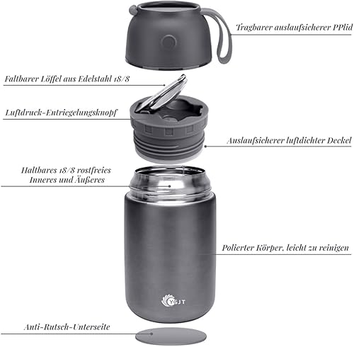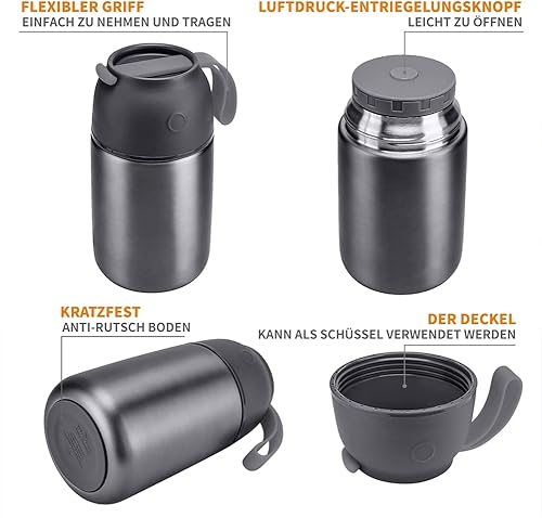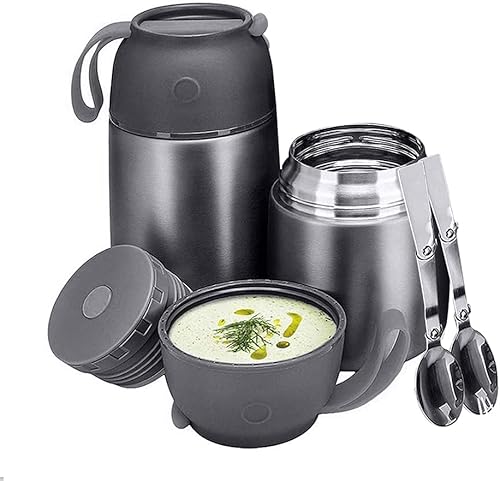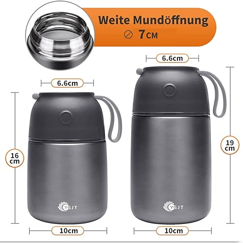 YGJT Boîte Alimentaire isotherme-500ml + 700mlBoîte à Lunch Isotherme en Acier Inoxydable |avec cuillère Pliante en Acier Inoxydable,pour Les Bureaux et Le Camping | sans BPA(Gris)