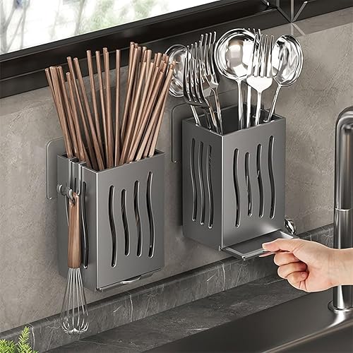 Support mural pratique à suspendre pour couverts et baguettes pour garder les ustensiles au sec (blanc, taille unique)