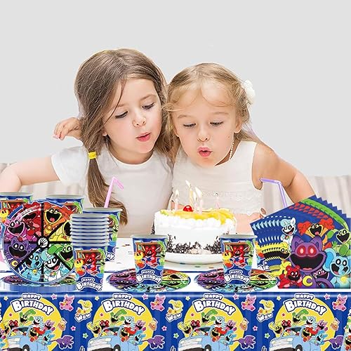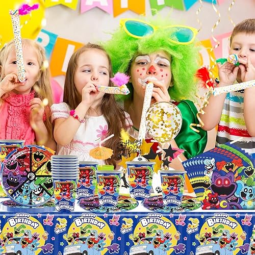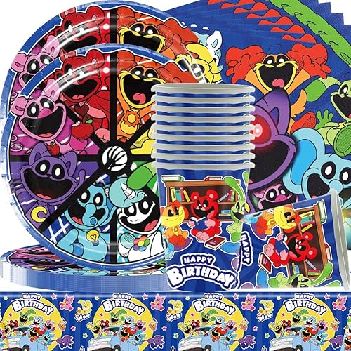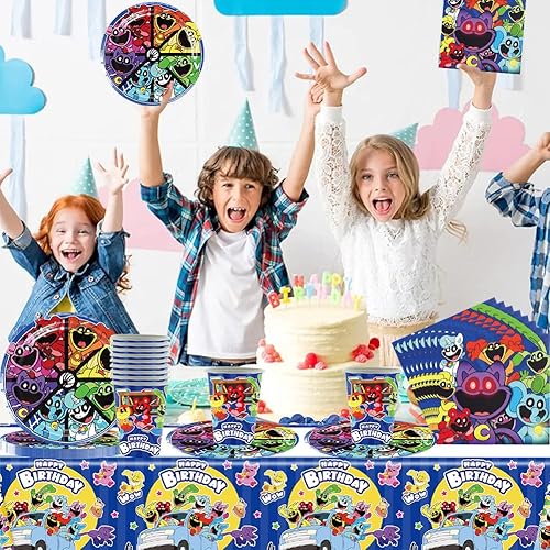 Smiling Critters Party Vaisselle, vaisselle pour fêtes d'animaux souriants,réutilisable assiettes,Vaisselle Anniversaire, Serviettes en papier, gobelets en papier,Nappe (61 PCS 20Invités)