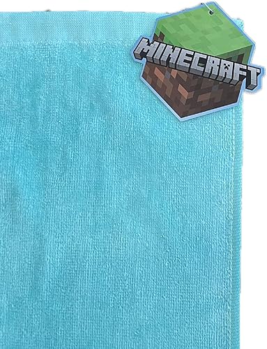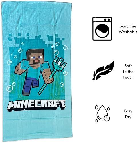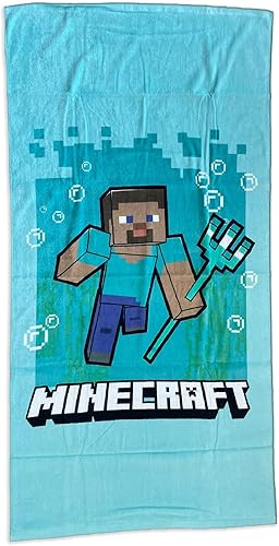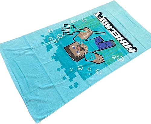 Fashion UK Serviette de plage Minecraft Grande 70 x 140 cm 100 % coton Modèle Steve Tridente. Serviette Piscine officielle, Bleu