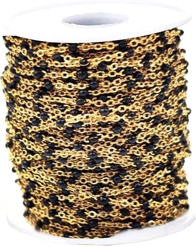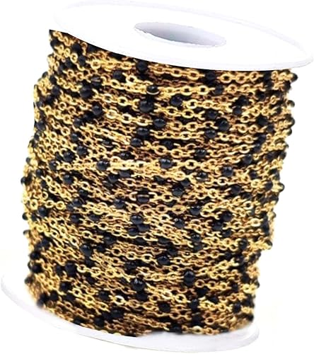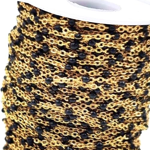 Perfeclan 5 mètres de câble chaîne Perles résultats en Acier Inoxydable Artisanat connecteurs croisés Fournitures de Bricolage durables pour Porte-clés Femmes, Or Noir