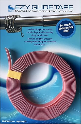 Ezyglide Ruban adhésif pour Tringle à Rideaux – pour Anneaux coulissants Lisses et Silencieux – Empêche Les Anneaux de s'accrocher sur Les tringles à Rideaux (en Particulier Les tringles Extensibles)