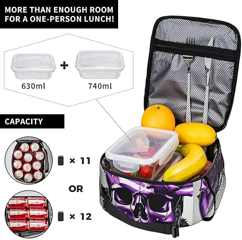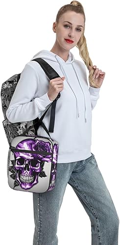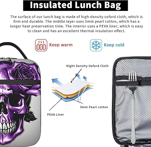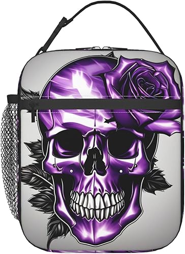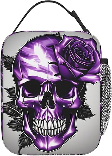 KPXXAQT Sac à déjeuner isotherme réutilisable avec imprimé rose et tête de mort Violet