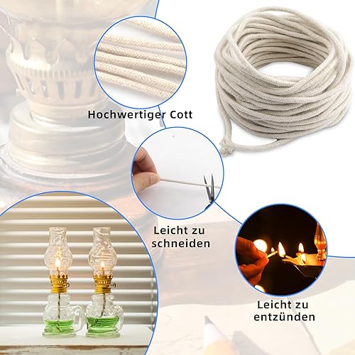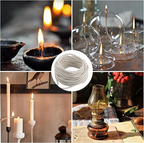 Mèche ronde pour lampe à huile - 10 m - Mèches flottantes de 3,2 mm - Pour remplacer les lampes en coton tressé - Long rouleau réglable pour bougies faites à la main