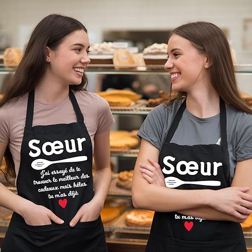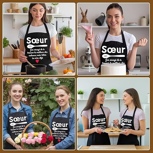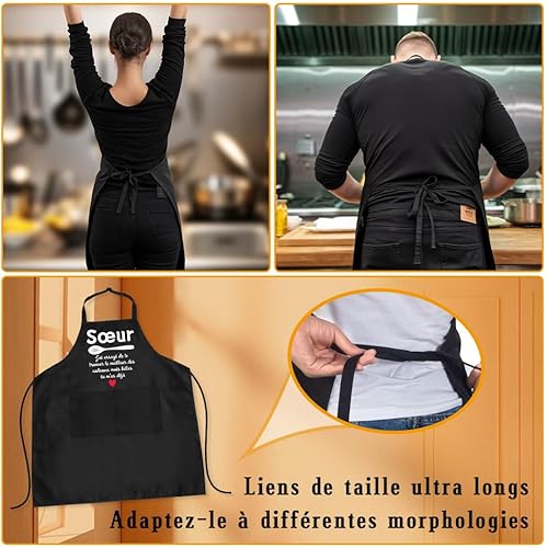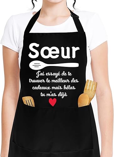 QONCV Cadeau Soeur, Cadeau pour Ma Soeur Tablier Apron Aproron Femme Anniversaire Noel Paques Saint Valentin Merci Retraite Remerciements Original Cadeaux Idee