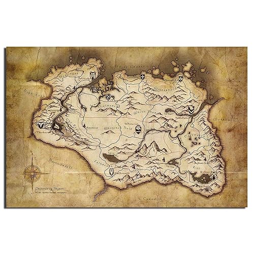 YIshiQI The Elder Scrolls V Skyrim Carte Jeu Affiche Toile Tissu Tissu Impression Peinture pour La Décoration Intérieure Mur Art Photo (sans Cadre)