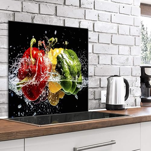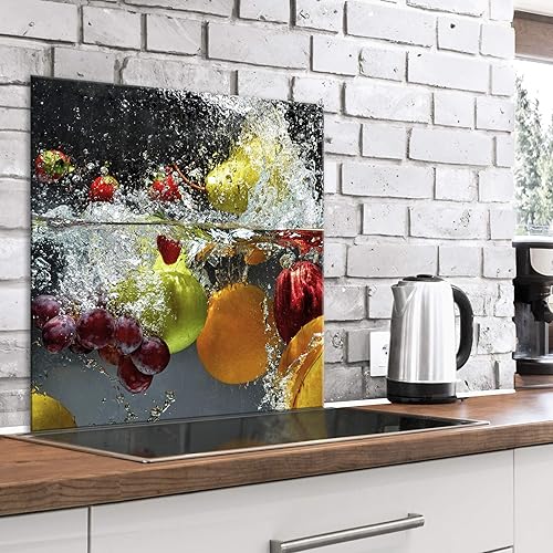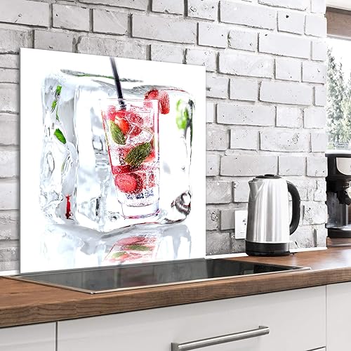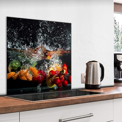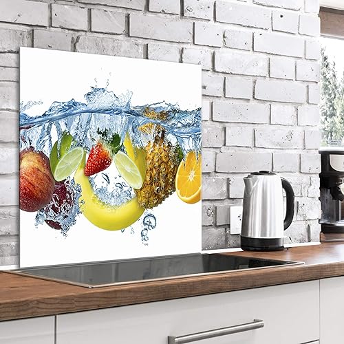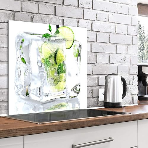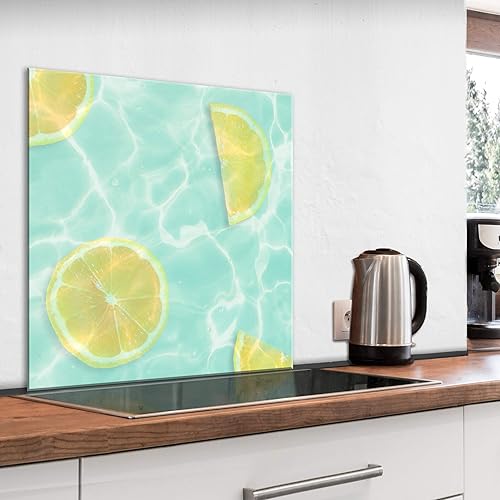 murando - Crédence Verre Cuisine 60x60 cm - Plaque Anti-Projection - Couvercle Anti-éclaboussures crédence - Revêtement Carreaux - Plaque en Verre trempé - Eau citronnée j-B-0058-aq-a